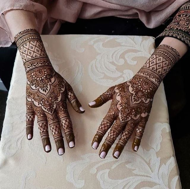 This year, full-hand designs with floral and geometric patterns are trending. They give a classic yet modern look, perfect for Eid festivities.