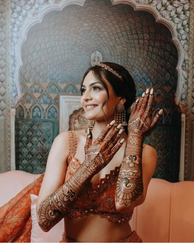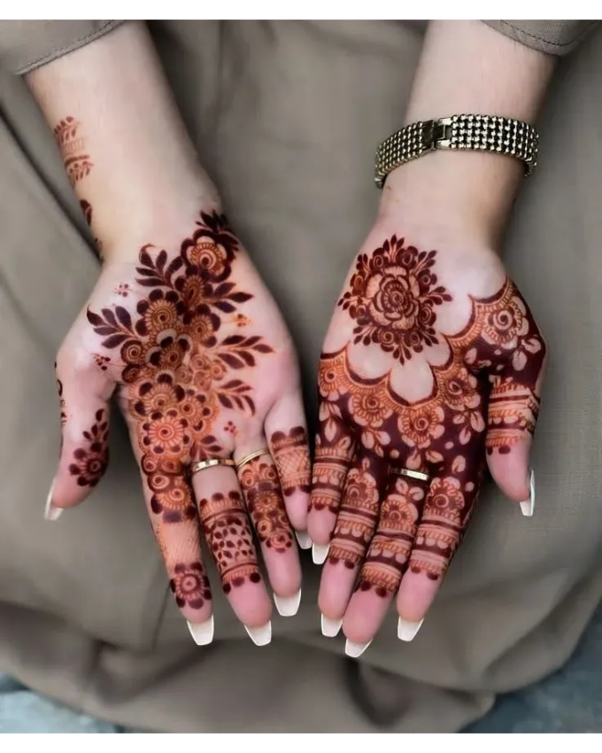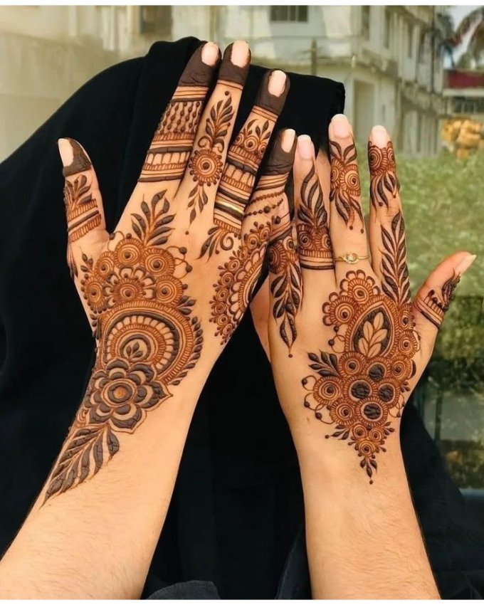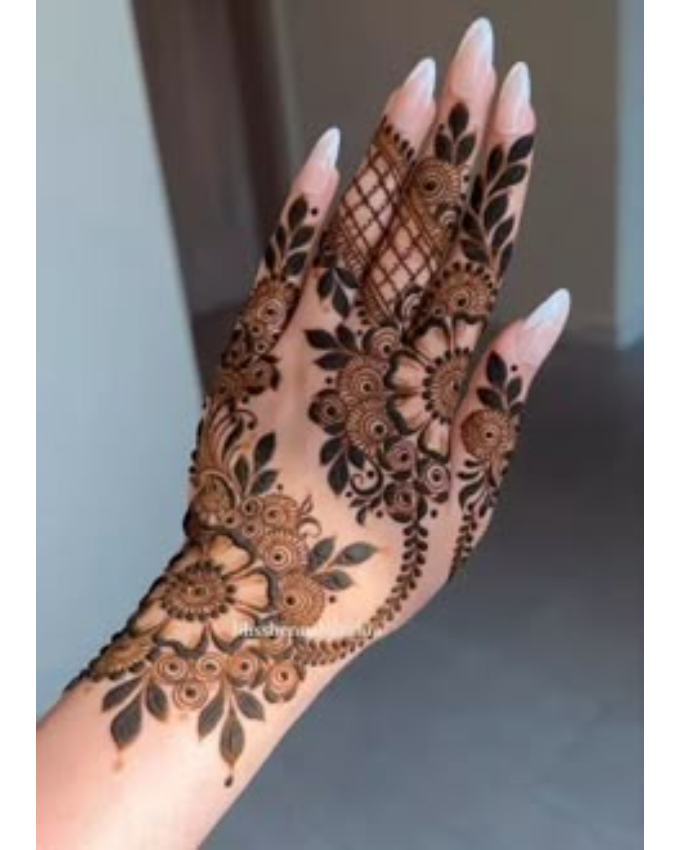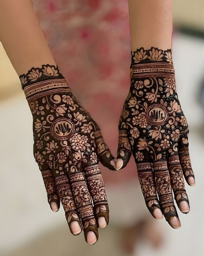 Social media has revolutionised mehndi art. Today’s Instagram stylish royal front hand mehndi design trends are a blend of traditional craftsmanship and modern aesthetics, often featuring:
