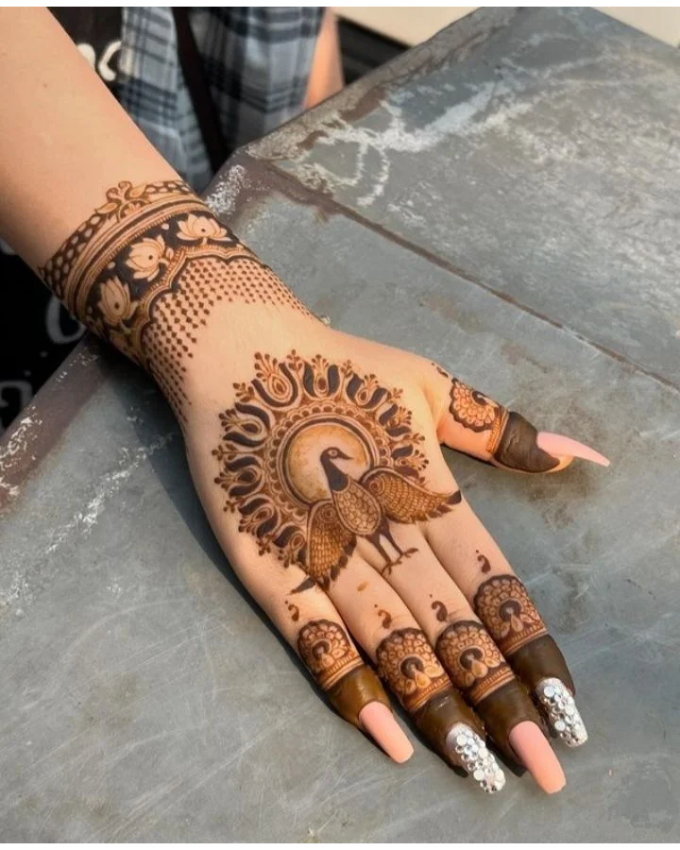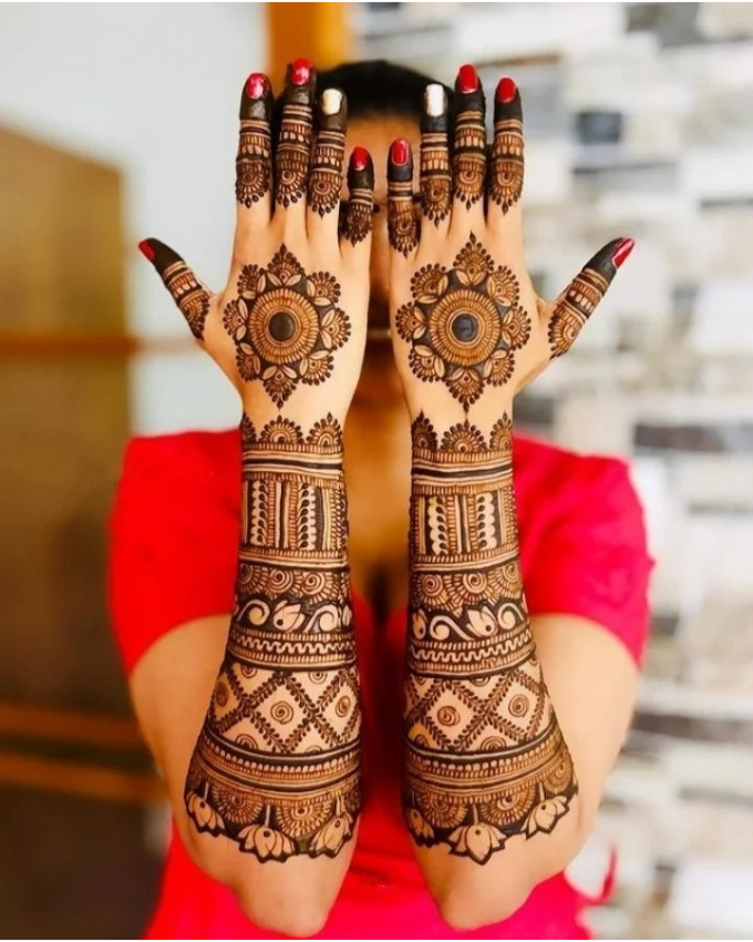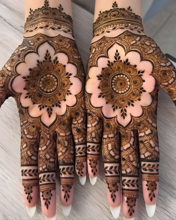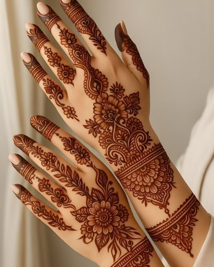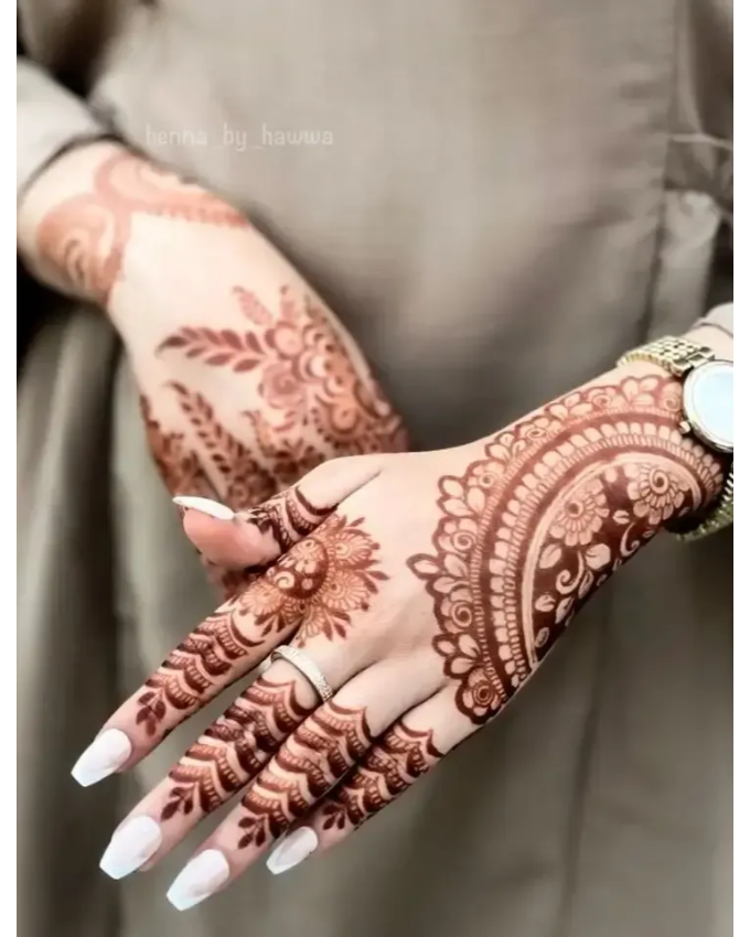 Weddings & Bridal Ceremonies: Go for a full, dense royal front hand mehndi design with intricate detailing. A Punjabi or traditional Indian style covering both front and back hand works best.