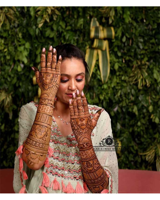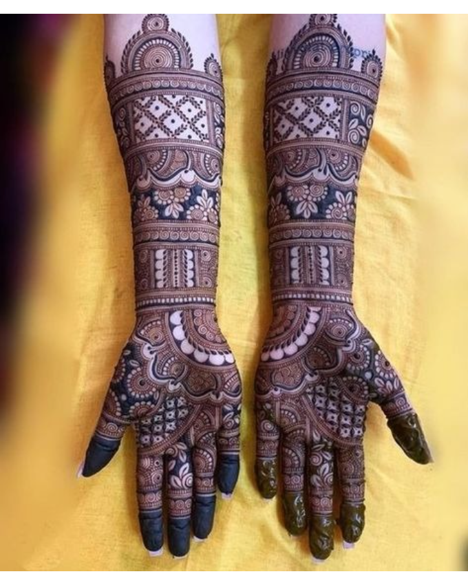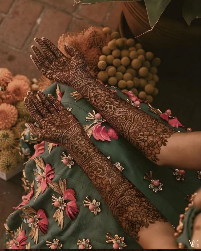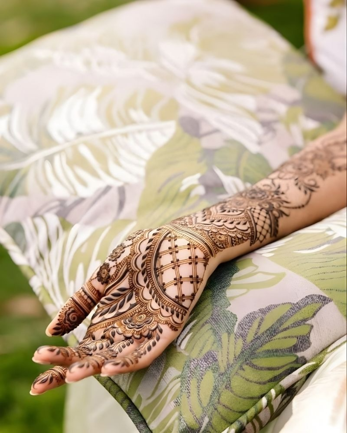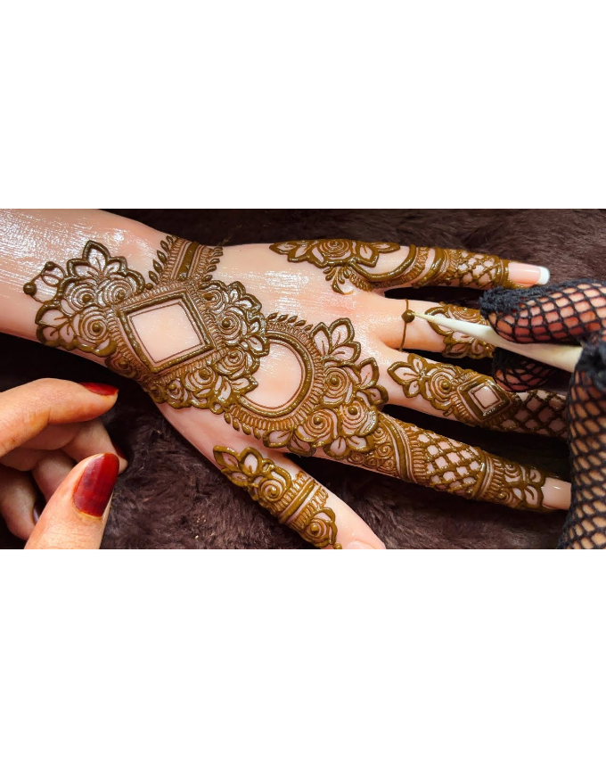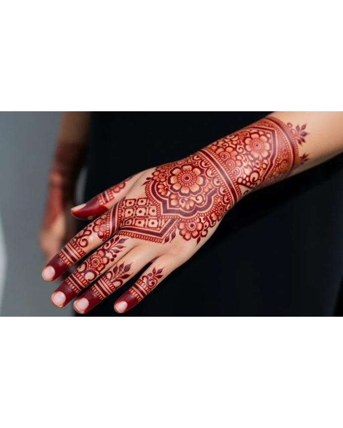 Photoshoots & Social Media: Bold, high-contrast designs with unique elements like royal hand tattoo-style mehndi patterns photograph exceptionally well.