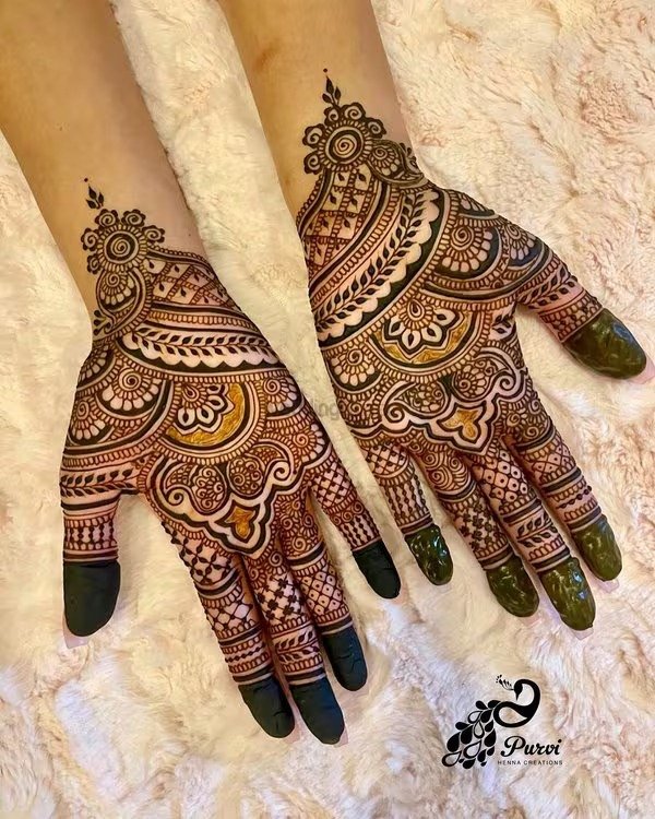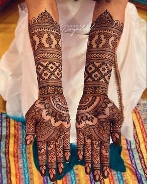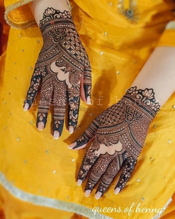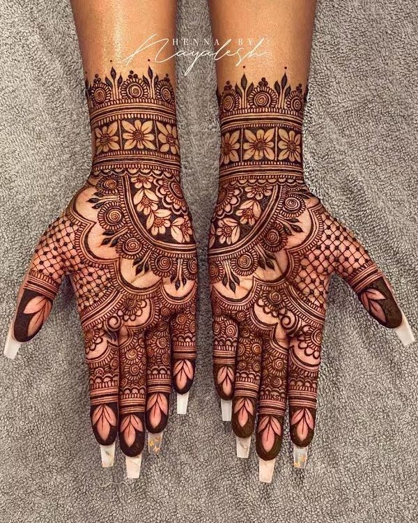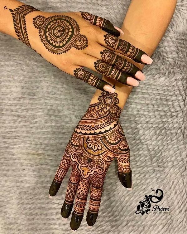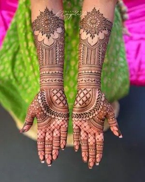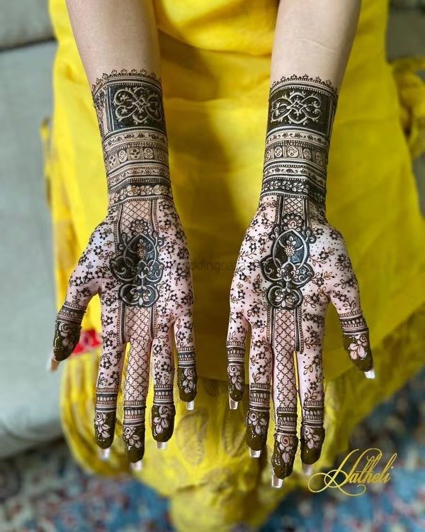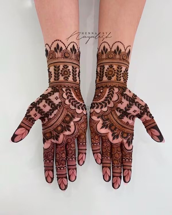 Bridal mehndi remains one of the most anticipated and cherished elements of wedding traditions. A full hand bridal mehndi design is applied on both hands and frequently extends up to the elbows. These designs are rich in detail and cover every part of the hand, including the fingers, palm, and wrist. Traditional motifs such as peacocks, floral chains, and mandalas are common, but modern bridal designs now incorporate personalized touches like the couple’s initials or cultural symbols. A modern full hand mehndi design offers a blend of tradition and contemporary elegance, giving brides a stunning and memorable look for their big day.