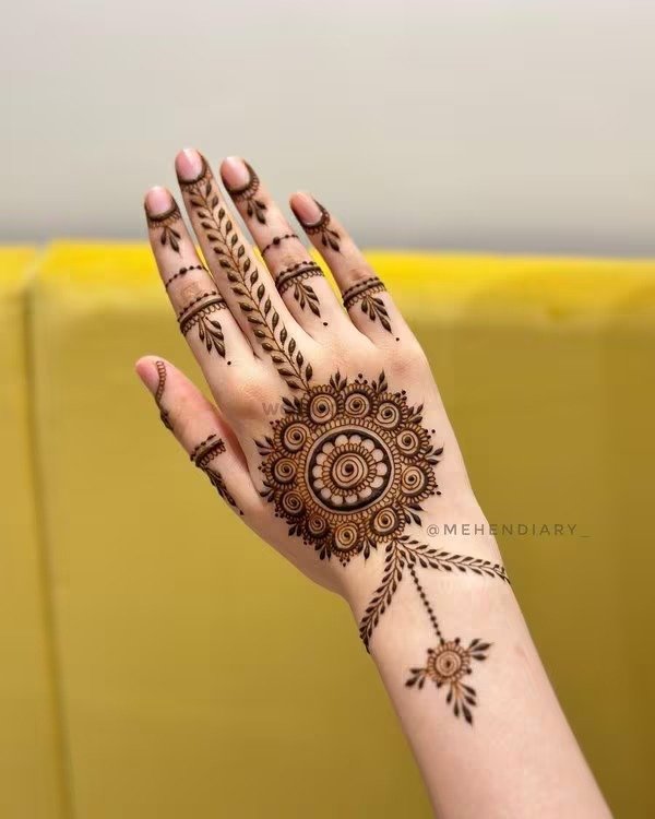 A stylish simple mehndi design does not mean plain or boring. In fact, some of the most photographed henna looks on social media are beautifully minimalist  a single vine climbing the ring finger, a mandala on the palm, or a fine floral trail along the wrist. These designs prove that less truly can be more.