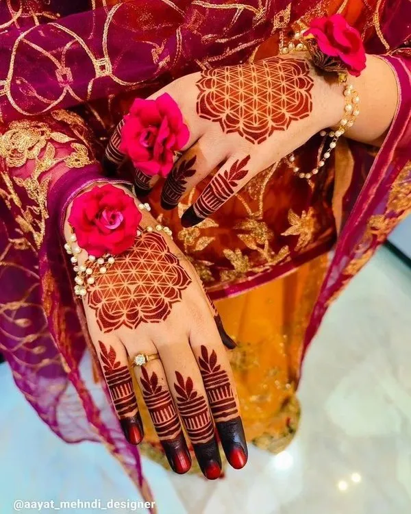 Not everyone has hours to spend in front of a mehndi artist, and that is completely okay. Simple mehndi design options have grown enormously popular because they offer a polished, put-together look without demanding expert skills or excessive time. Clean lines, minimalist florals, and delicate geometric shapes give your hands an effortlessly chic appearance and they suit every age and occasion.