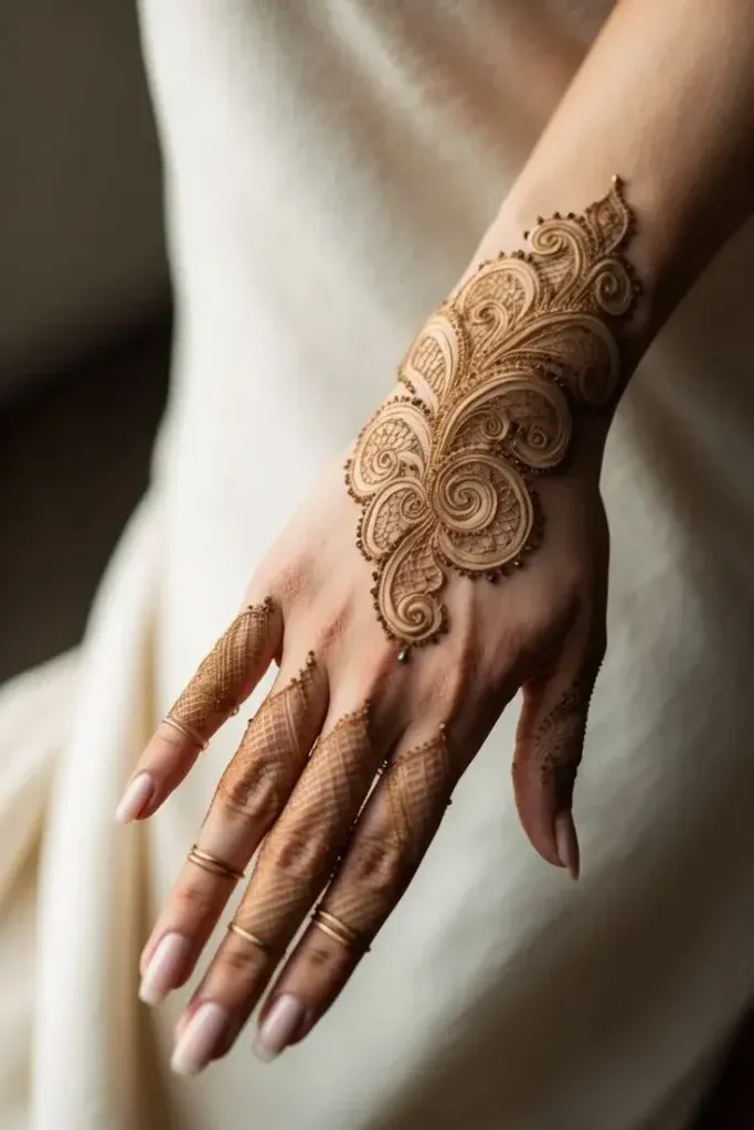 The back of the hand has become a popular canvas for both intricate and modern mehndi designs. A mehndi design back hand can range from small, elegant motifs to more detailed arrangements that cover the entire hand. Trends in 2026 emphasize flowing floral patterns, minimalist geometric shapes, and delicate vines that extend from the fingers to the wrist. A back side mehndi design can be subtle or more decorative depending on the occasion. For weddings or formal events, a back full hand bridal mehndi design becomes a statement piece, often featuring dense floral arrangements, paisleys, and even symbolic elements like initials or meaningful icons.